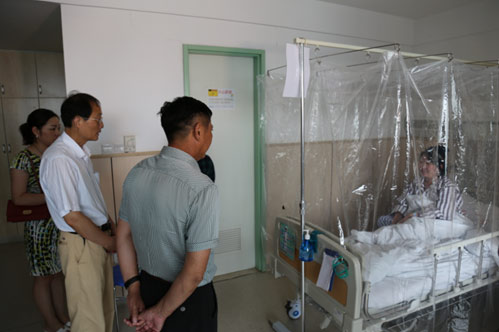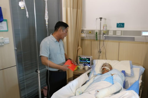 7月7日下午2時,公司副總經(jīng)理、工會主席徐林同志前往市第一人民醫(yī)院親切看望因病住院的蔡正陽、因傷住院的劉彥榮,并分別向蔡正陽送上資助款2萬元,向劉彥榮送上資助款1萬元。其中蔡正陽系二次資助。